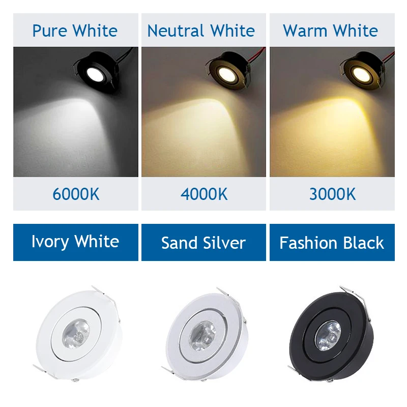 Le mini spot encastré LED est idéal pour éclairer les expositions de bijoux et les présentoirs de cabinets. Avec sa puissance de 1W ou 3W, il offre une luminosité adéquate pour mettre en valeur vos bijoux et autres objets exposés. Fabriqué en aluminium, il est durable et facile à installer. Disponible en blanc et noir, ce spot encastré s’adapte à tous les styles d’expositions. Il fonctionne avec une tension d’entrée de AC85-265V 110V 220V et une fréquence de 50-60Hz. La source lumineuse est une puce LED, offrant une luminosité de 100Lm/W. La température de couleur peut être sélectionnée entre blanc chaud, blanc naturel et blanc froid. Le degré de faisceau est de 45°, assurant un éclairage ciblé. Ce spot encastré est certifié CE/ROHS et dispose d’une protection IP52. Sa durée de vie est supérieure à 30 000 heures.