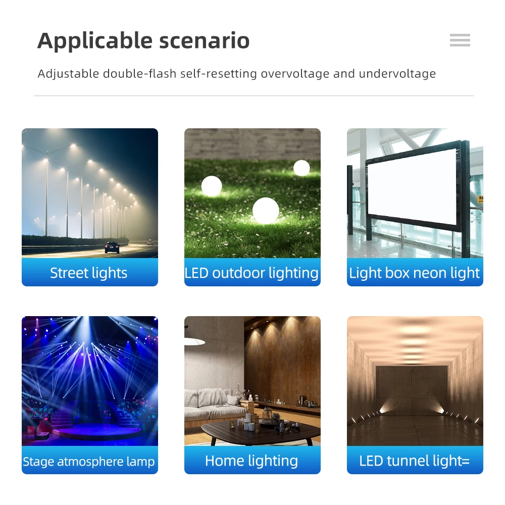 Le relais de tension numérique réglable de 40A/63A est un disjoncteur domestique qui offre une protection contre les surtensions, les sous-tensions et les surintensités. Ce produit dispose d’un affichage de la tension et du courant, et permet également de les calibrer selon les besoins de l’utilisateur. Il est doté d’une fonction de récupération automatique et peut être réinitialisé aux paramètres d’usine en appuyant sur un bouton dédié. En outre, il offre la possibilité d’effectuer une enquête sur les défauts.
