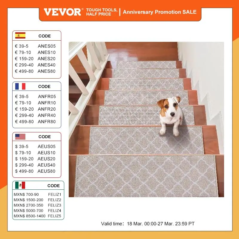 VEVOR-Tapis d’Escalier en Tissu Doux, Polymères Antidérapants, Lavable en Machine, 28×9/30×8 Pouces