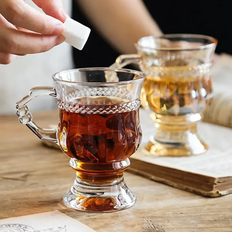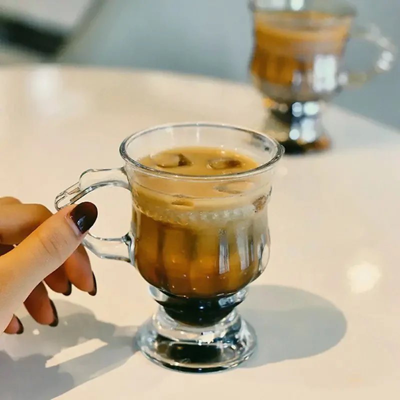Les tasses en verre de décoration pour le café sont équipées de poignées durables, de sorte que les verres à pied peuvent être facilement ramassés même si la tasse est remplie de boissons chaudes.