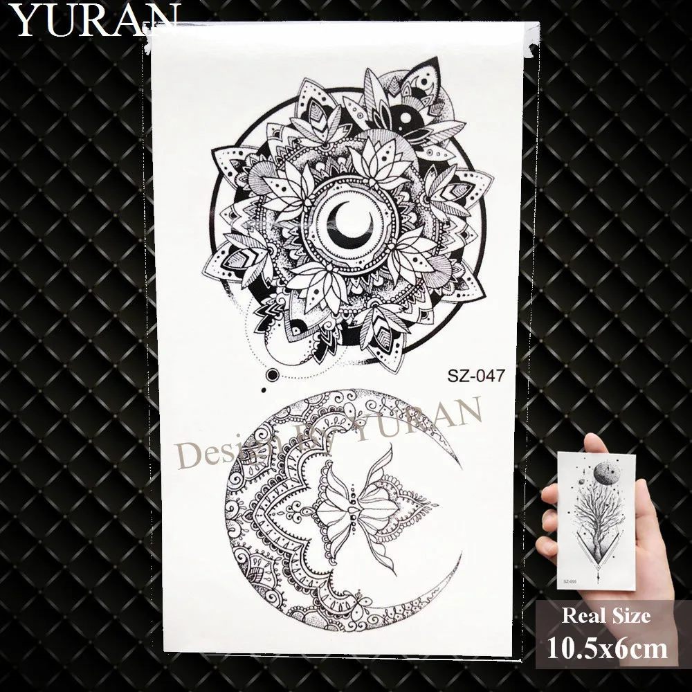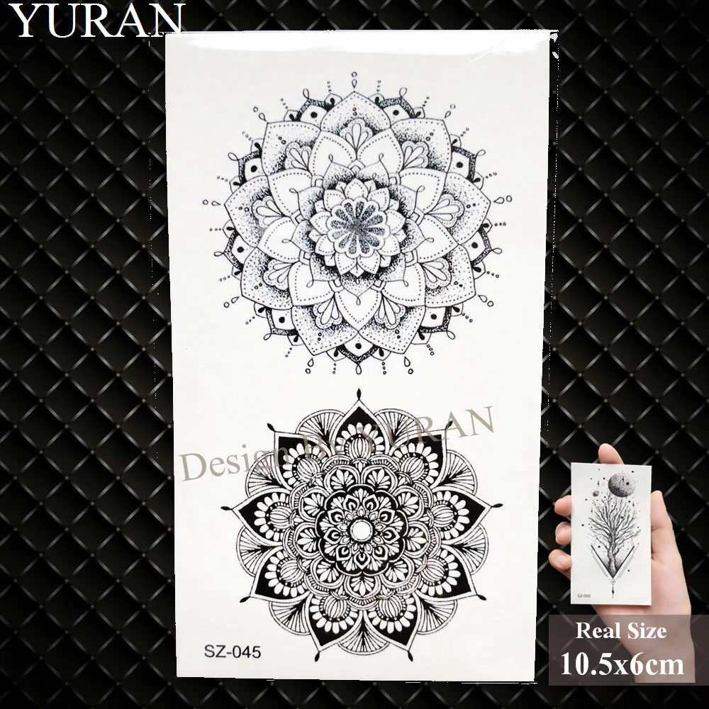 - Tatouage temporaire au henné noir pour femme, fleur de mandala