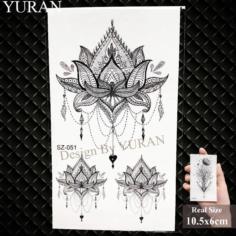 Le tatouage temporaire YURAN – Faux tatouage temporaire au henné noir pour femme, fleur de mandala, beauté des filles, étanche, indien, mehndi peut durer jusqu’à une semaine en fonction des conditions d’utilisation.