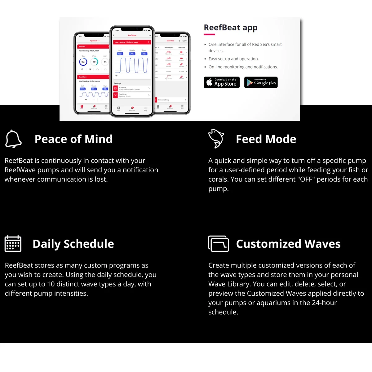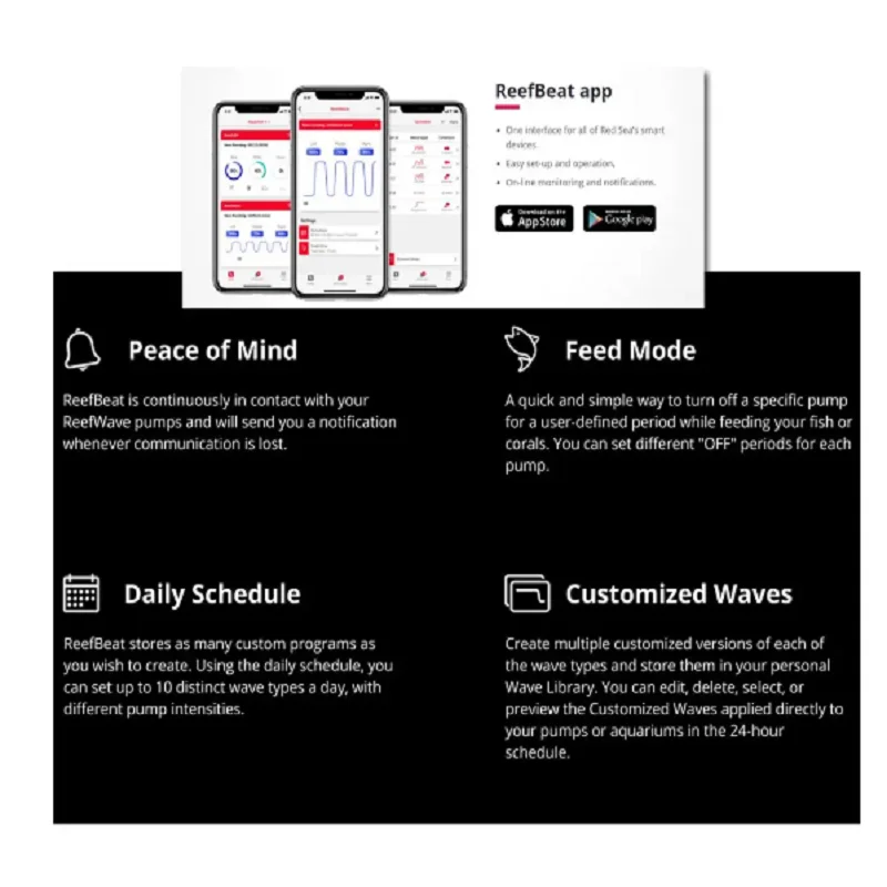 • Application ReefBeat pour faciliter l’installation, l’opération, la surveillance et les notifications.