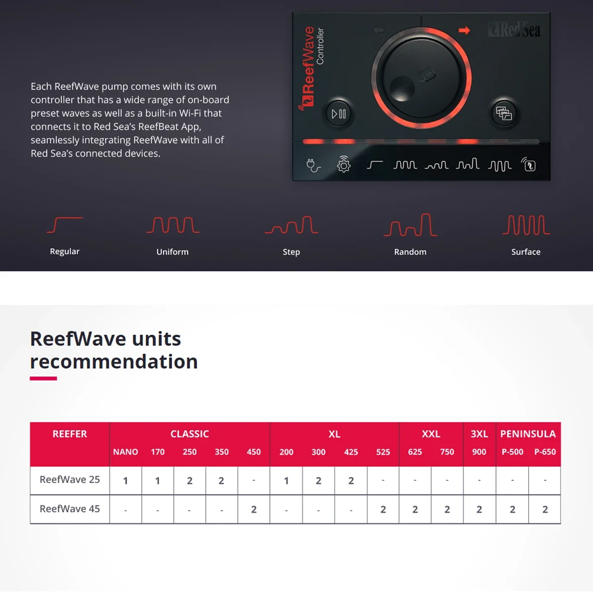 Oui, il est possible de synchroniser plusieurs pompes Red Sea ReefWave de différentes tailles.