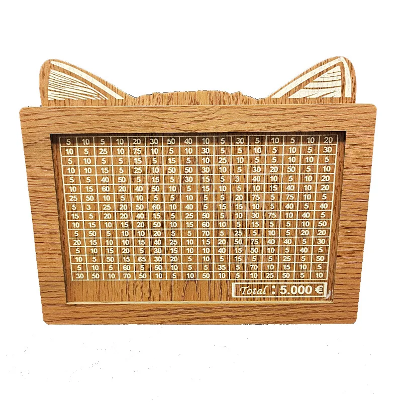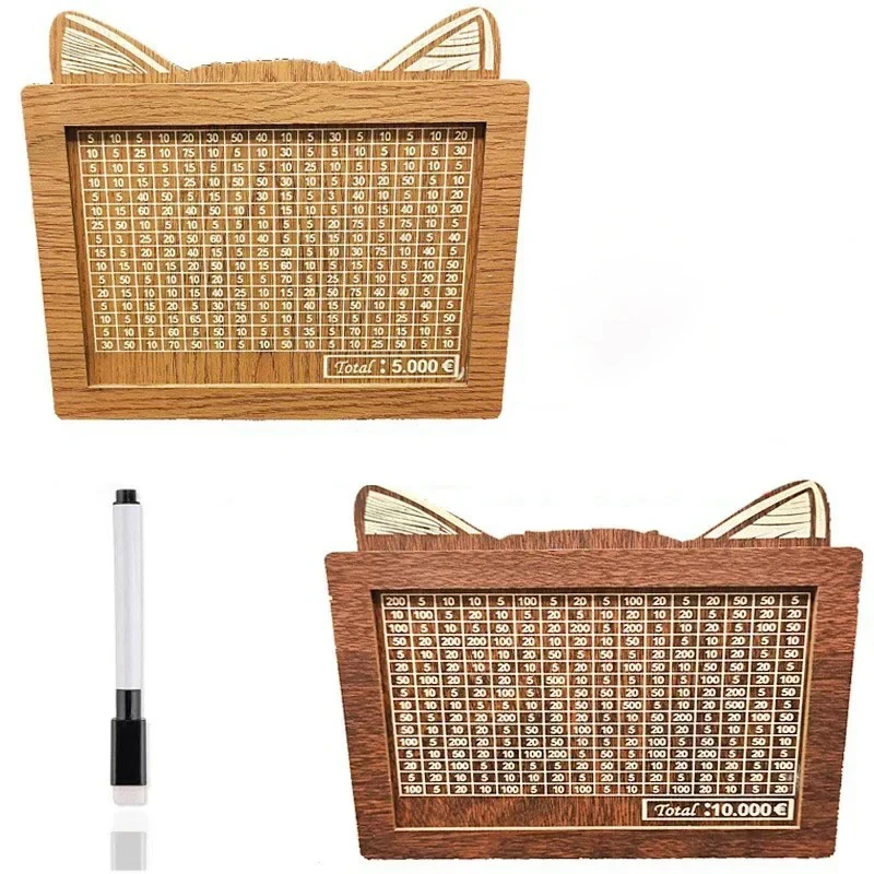 | Produit | 1000/2000/3000/5000/10000 Euro tirelire tirelire magique tirelire en bois tirelire réutilisable avec numéros d’objectif d’économie boîtes de chat |