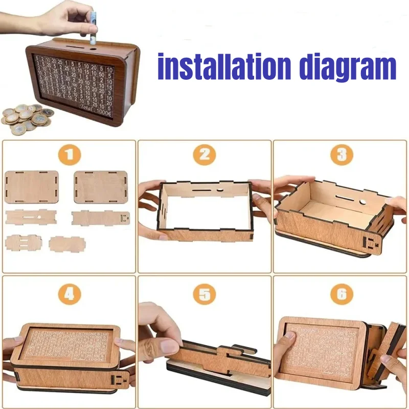 - Liste d’emballage: 1 x Tirelire en bois avec compteur d’objectifs d’épargne