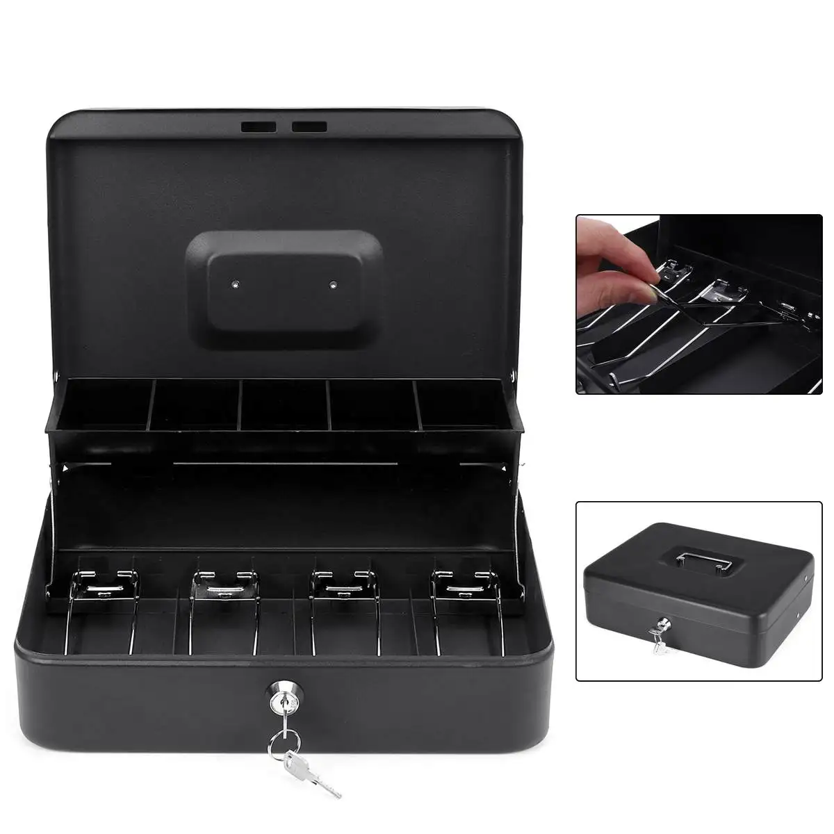 | Mini tirelire, casier à clés portable, magasin de maison sûr, stockage d’argent de sécurité en acier, tiroir de caissier, pièce cachée, rouge, bleu, noir | – Poignée pratique pour transporter solidement la caisse – Plateau de caisse amovible et serrure à clé de sécurité – Le plateau cantilever à cinq compartiments s’ouvre automatiquement lorsque la caisse s’ouvre – Quatre poids de billets détiennent la monnaie – Le déverrouillage par bouton-poussoir pratique maintient le couvercle fermé, même lorsqu’il est déverrouillé – Système de verrouillage à clé – Une poignée encastrée facilite le rangement et le transport – Plateau d’argent adapté pour les espèces, les pièces, les clés ou les chèques |