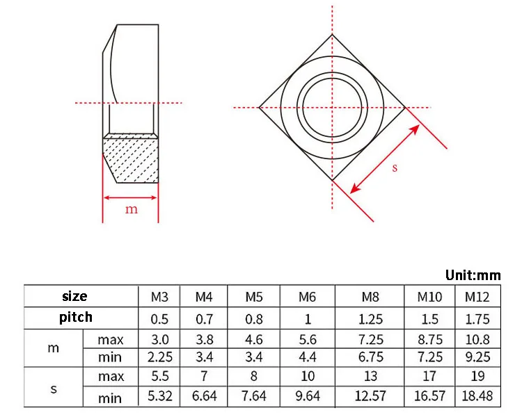 - Tailles disponibles : M3, M4, M5, M6, M8, M10, M12