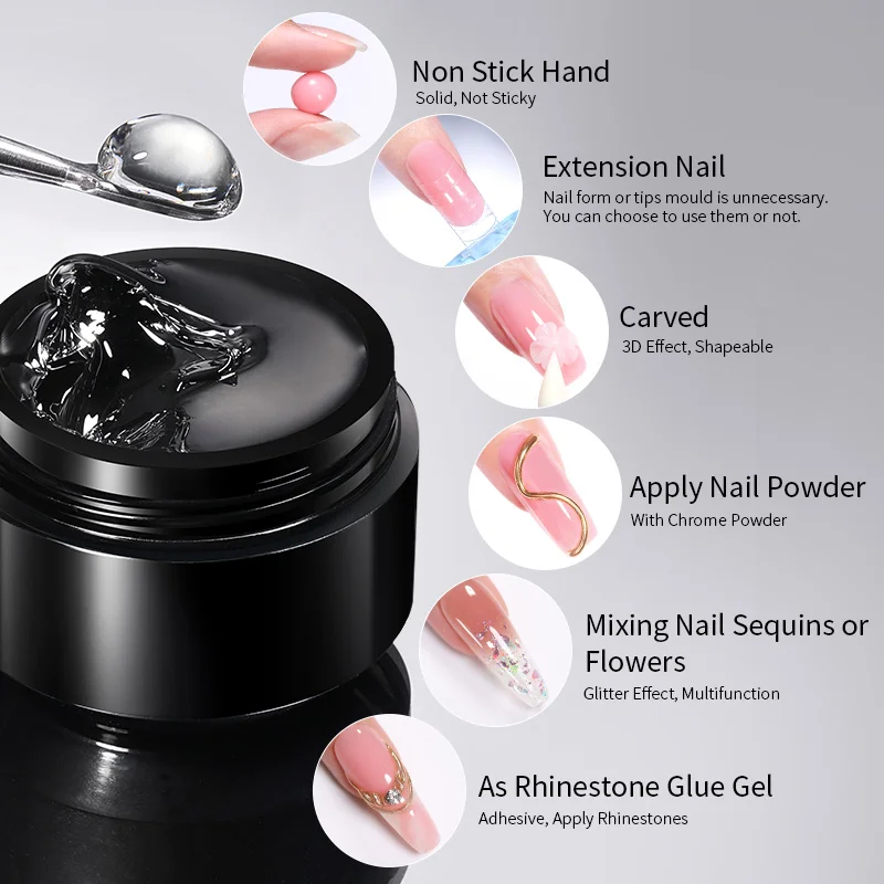 La boîte contient 15ml de gel d’extension solide antiadhésif pour les mains pour les ongles.