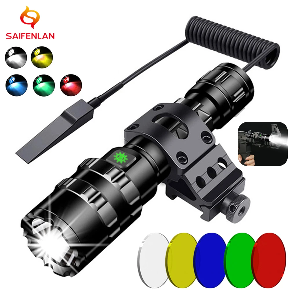 La torche de chasse tactique à LED L2 18650 est un éclairage d’extérieur étanche en aluminium, conçu pour les amateurs de sports de plein air. Elle est équipée d’un support pour pistolet et d’un interrupteur. Elle est rechargeable via USB.