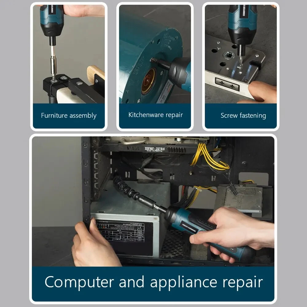 Ce tournevis électrique sans fil est polyvalent et convient pour les réparations et l’entretien des produits électroniques et des instruments précis tels que les motos, les téléphones portables, les montres et les appareils ménagers.