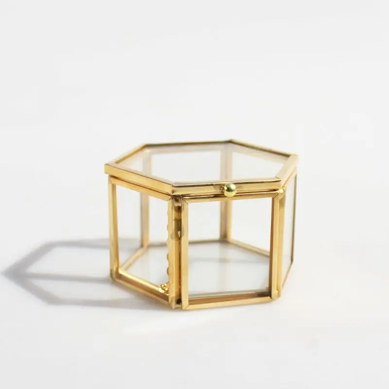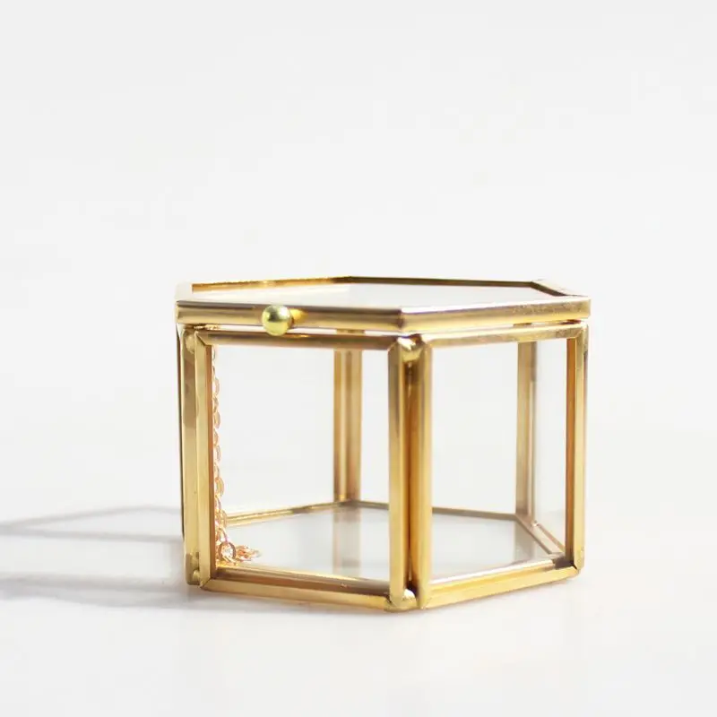 - Boîte à bijoux en verre transparent avec cadre en métal solide