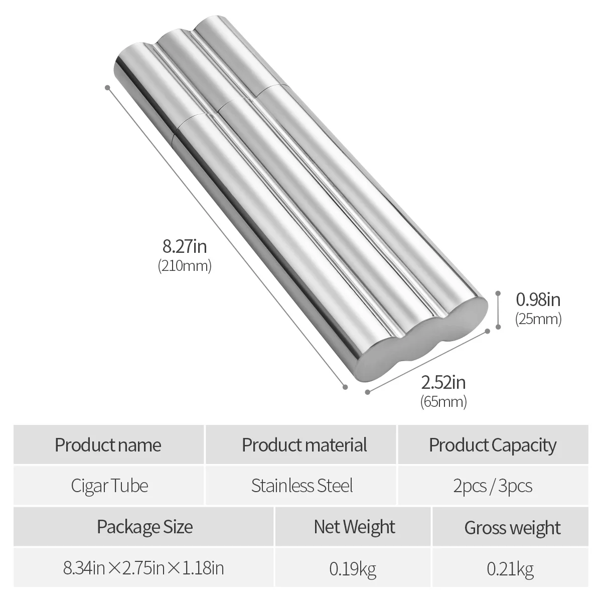 La qualité alimentaire de l’acier inoxydable garantit que vos cigares restent frais et protégés, et le coffret cadeau inclus ajoute une touche supplémentaire de raffinement lors de la présentation du tube en cadeau.