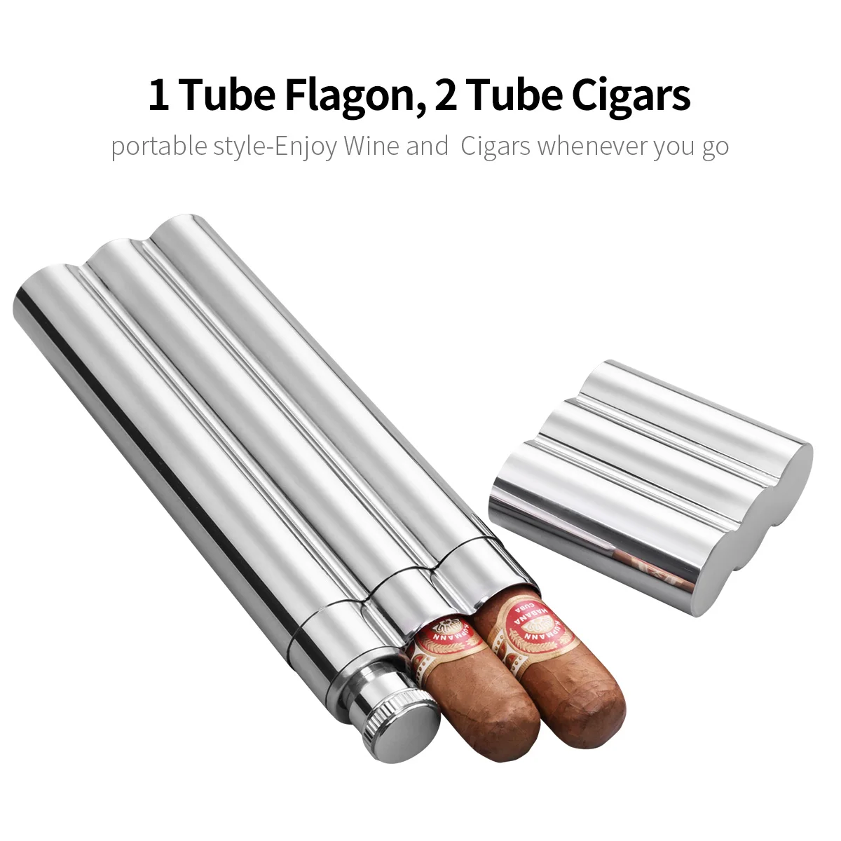 Tube de Cigare Portable en Acier Inoxydable de Qualité Alimentaire, 2 Bâtons, 1 Entonnoir, Tube de Vin, Homme d’Affaires, Voyage, Carry Cigar Wine Case Holder With Box