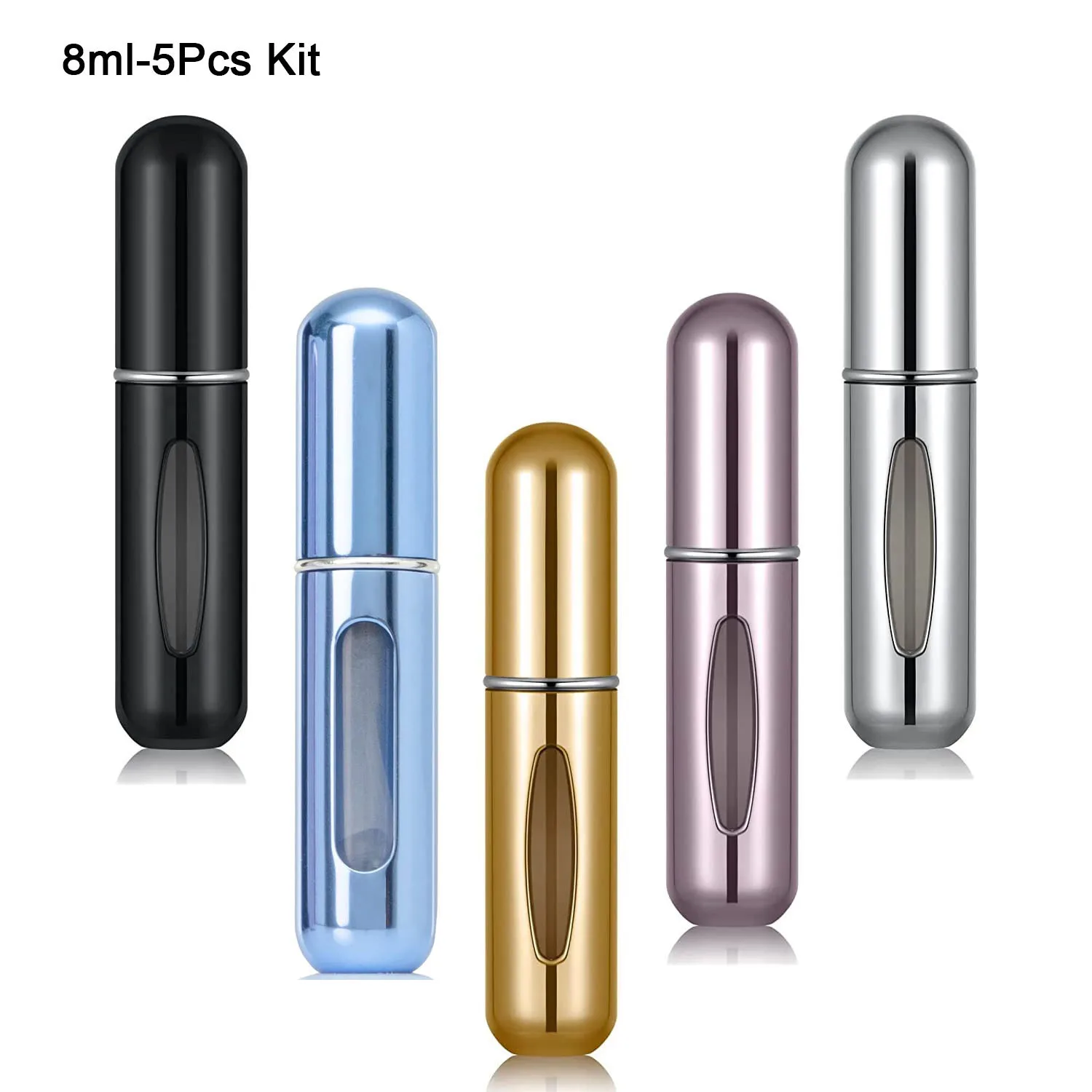 Atomiseur de parfum 8/5ml Récipient de liquide portable pour cosmétiques de voyage Mini bouteille de pulvérisation d’alcool en aluminium vide rechargeable