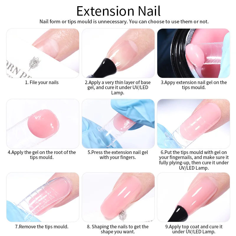 - Prendre le gel d’extension clair pour ongles.