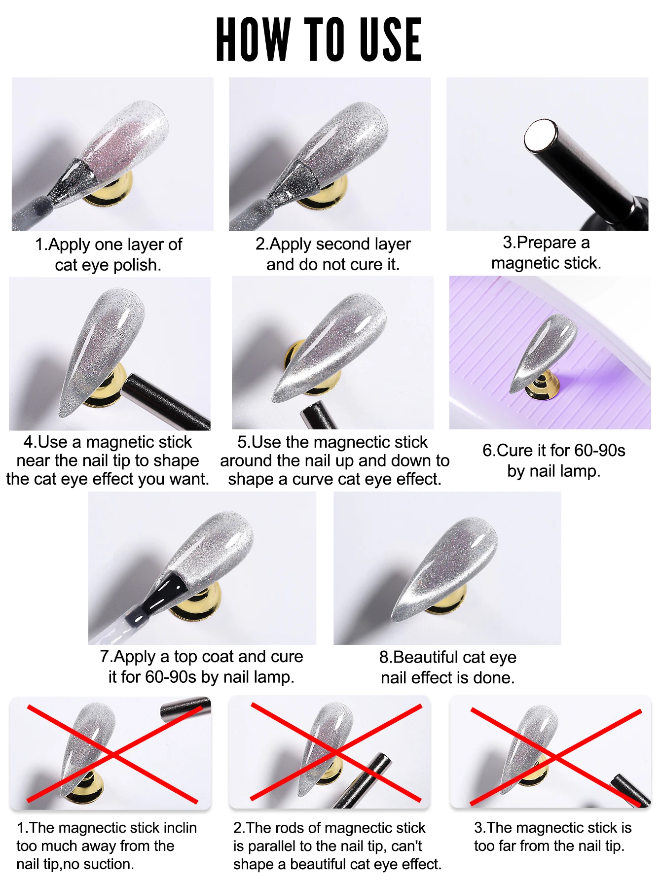 - Étape 3. Appliquer le gel magnétique pour chat et utiliser un bâton magnétique pour former la shape souhaitée, puis faire durcir.