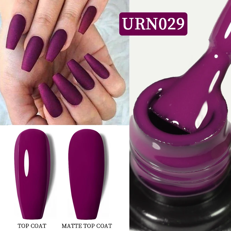 UR SUGAR propose un vernis à ongles en gel violet foncé, spécialement conçu pour une utilisation avec une lampe UV LED. Ce vernis à ongles semi-permanent nécessite une couche de finition mate pour un résultat parfait.