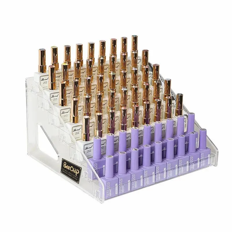 • Le design acrylique transparent de cette étagère de présentation permet de présenter avec élégance vos couleurs à ongles, lipsticks et gloss à l’épicerie.