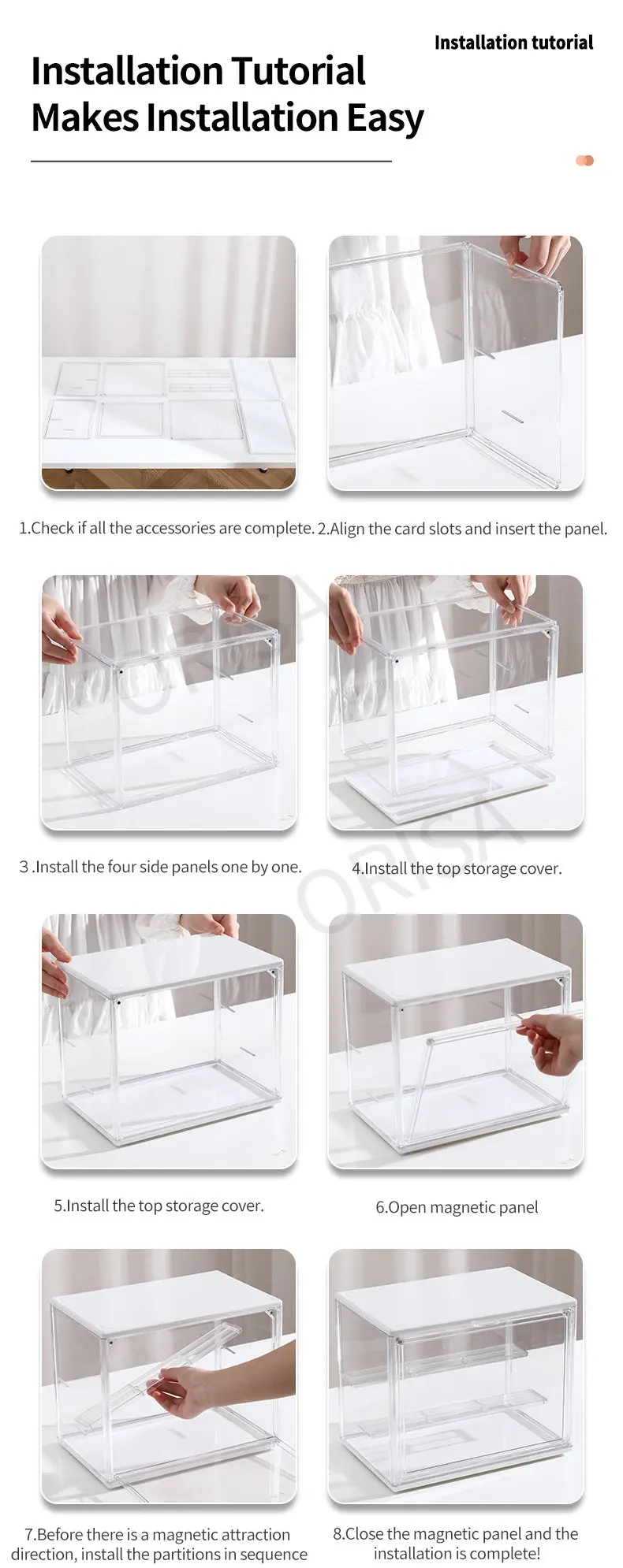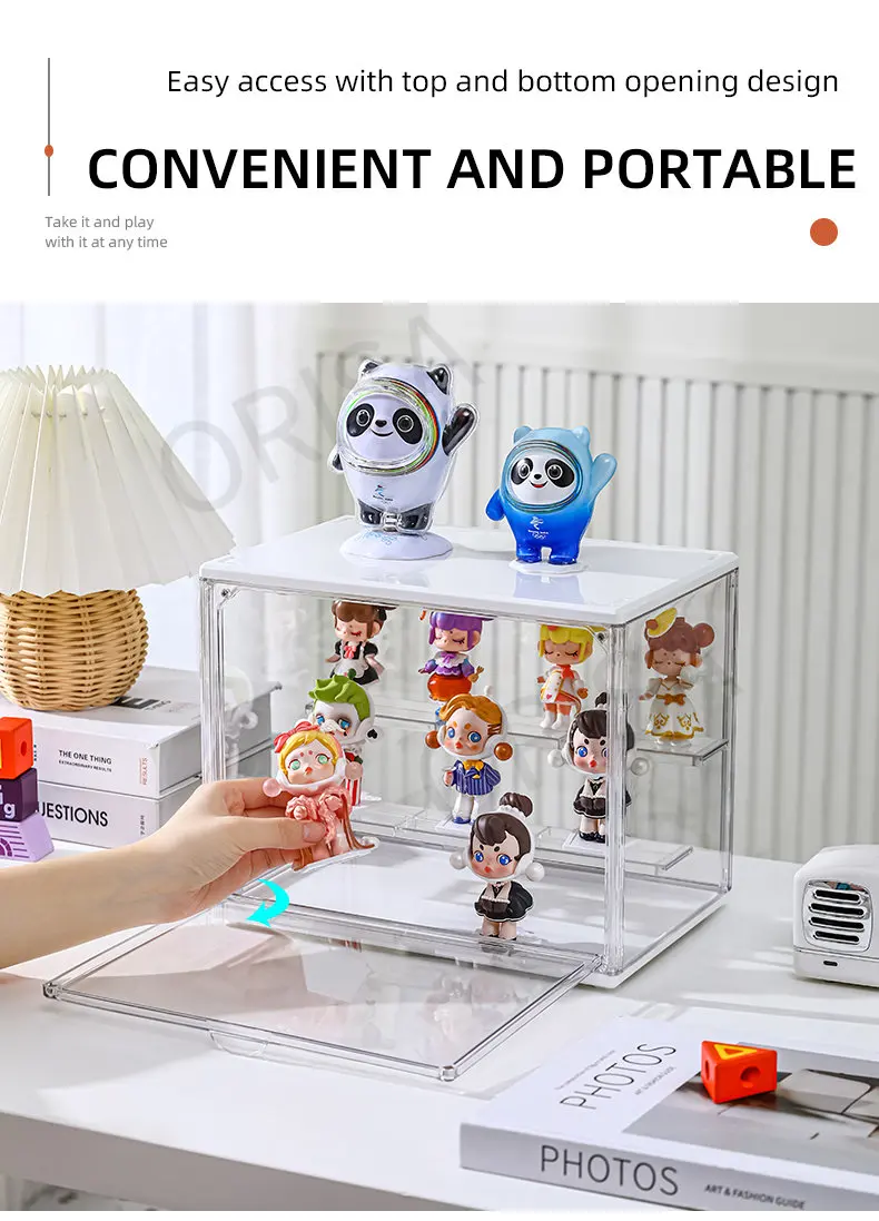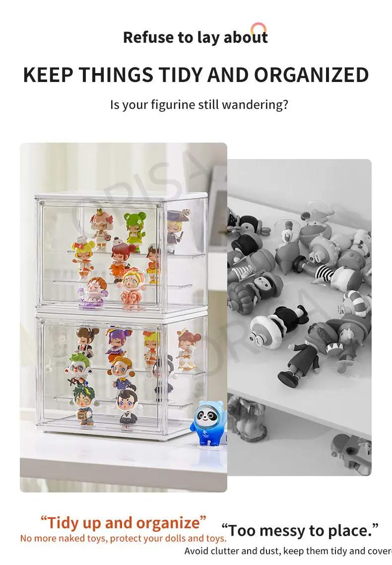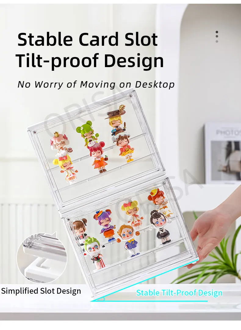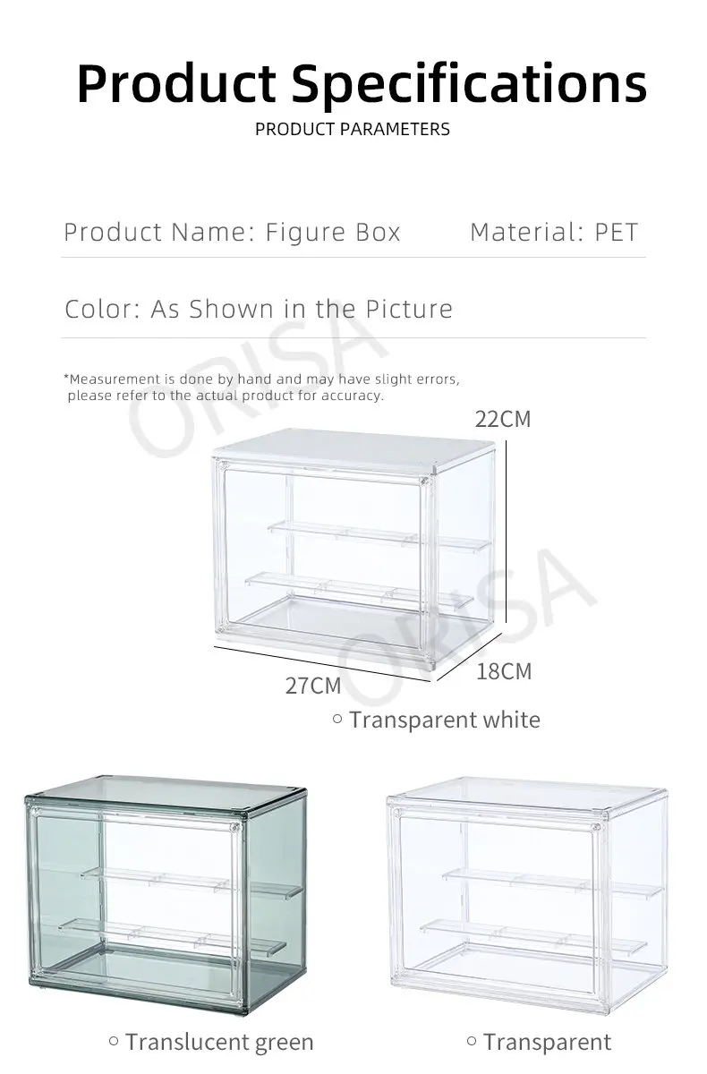 La boîte de rangement pour figurines est un choix idéal pour les collectionneurs de figurines qui souhaitent les exposer de manière organisée et sûre. Sa conception unique étape par étape et sa fonction d’adsorption magnétique la rendent facile à utiliser, tandis que sa base stable évite le basculement. De plus, sa facilité d’assemblage et de démontage permet un rangement bidirectionnel pratique. Les différents coloris disponibles s’adaptent à différents styles de décoration d’intérieur. Dans l’ensemble, c’est un produit de grande qualité qui mettra en valeur vos figurines comme de véritables œuvres d’art.