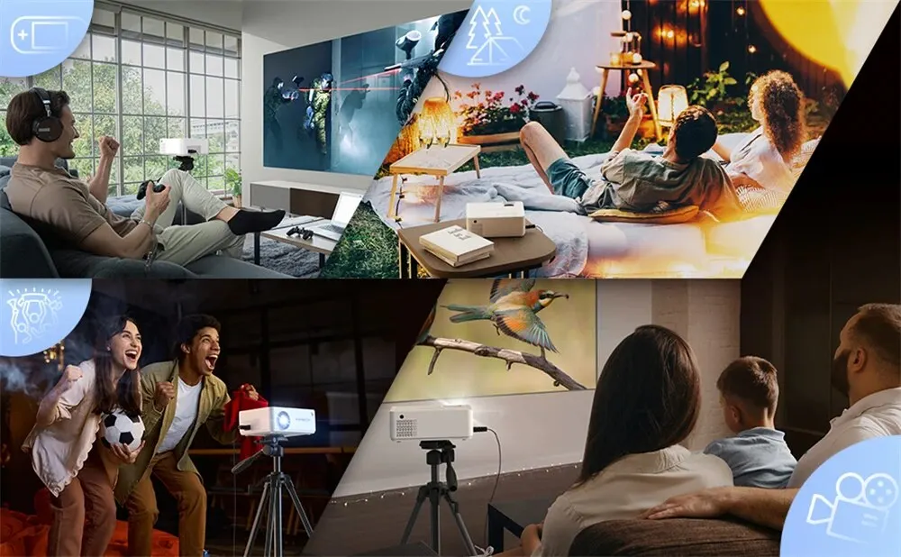 • Conception portable: Prenez votre home cinéma en déplacement avec ce projecteur portable, parfait pour les soirées cinéma en plein air ou les rassemblements impromptus.