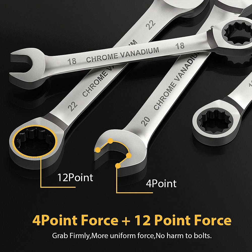 Le jeu de clés WOZO est fabriqué en acier au chrome-vanadium de haute qualité, traité thermiquement pour une bonne ténacité, étanchéité et résistance à la corrosion. Ces alliages aéronautiques offrent une durée de vie plus longue que les autres matériaux.